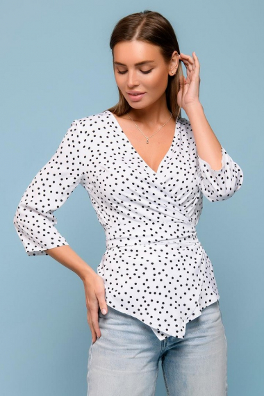 Фото товара 21910, белая блузка в горох / polka dot
